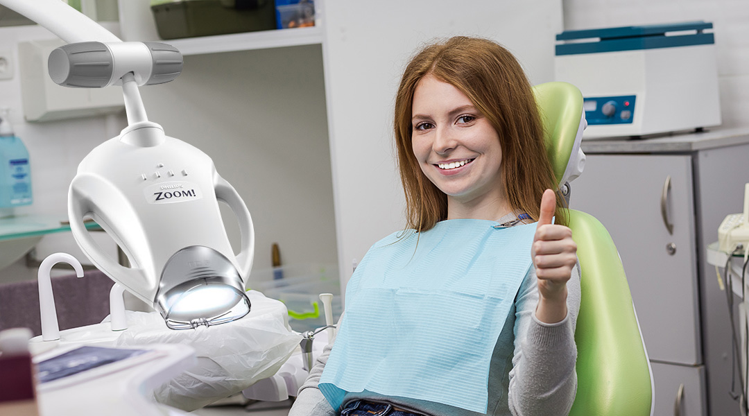ZOOM (последняя версия — ZOOM 4). Как отбелить зубы от желтизны? С помощью технологии ZOOM. Из всех перечисленных вариантов этот — наиболее дорогостоящий. Отличие от лазерного или химического — в использовании лампы с холодным свечением. Гель, который наносят на эмаль, содержит пониженную концентрацию перекиси водорода, 25% против стандартных 35-40%. Фосфат калия в составе укрепляет эмаль. Процедура безболезненная, длится в пределах часа. Результат — осветление на 8 тонов и более. При тщательном уходе за полостью рта эффект продержится 3-5 лет. Можно проводить в домашних условиях и без лампы, просто нанеся состав на эмаль. Но это занимает больше времени и требует предварительной консультации стоматолога.