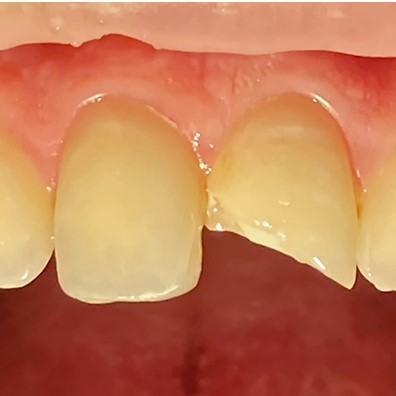 а) Оцените ситуацию. Определите, насколько большая часть зуба откололась. Это может быть небольшой скол эмали или крупный фрагмент, обнажающий дентин или пульпу.