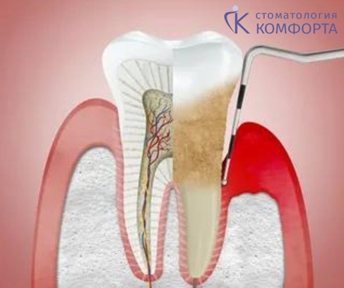 - Очищение полости рта пациента от гноя, воспаленных тканей и чистка каналов корня являются главным этапом лечения периодонтита.