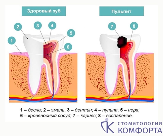 Пульпит зуба – это воспалительное заболевание пульпы, находящейся внутри зуба.