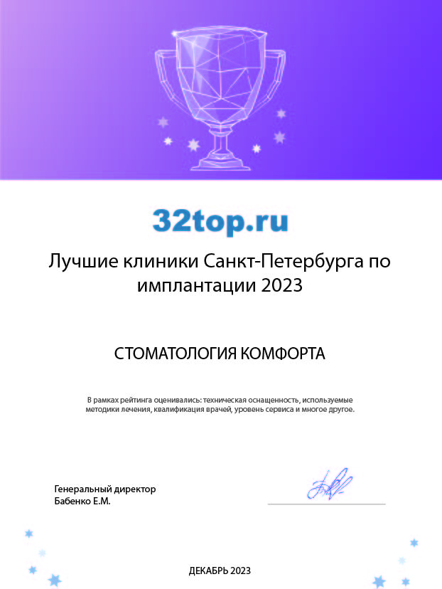Отличная клиника полностью соостветсвует своему названию - все процедуры комфортны и безболезнены. Я устанавливала импланты у Бельтюкова Е.П. и осталась очень довольна. Также особенно хочу отметить доктора Халипову Е.П. за высокий уровень квалификации и очень внимательное отношение к пациентам. Также очень довольна сервисом клиники и работай медсестер и медбратьев. Спасибо. И желаю клинике дальнейшего процветания. Дарите улыбки пациентам !!