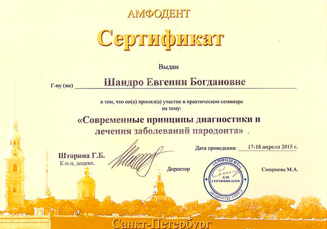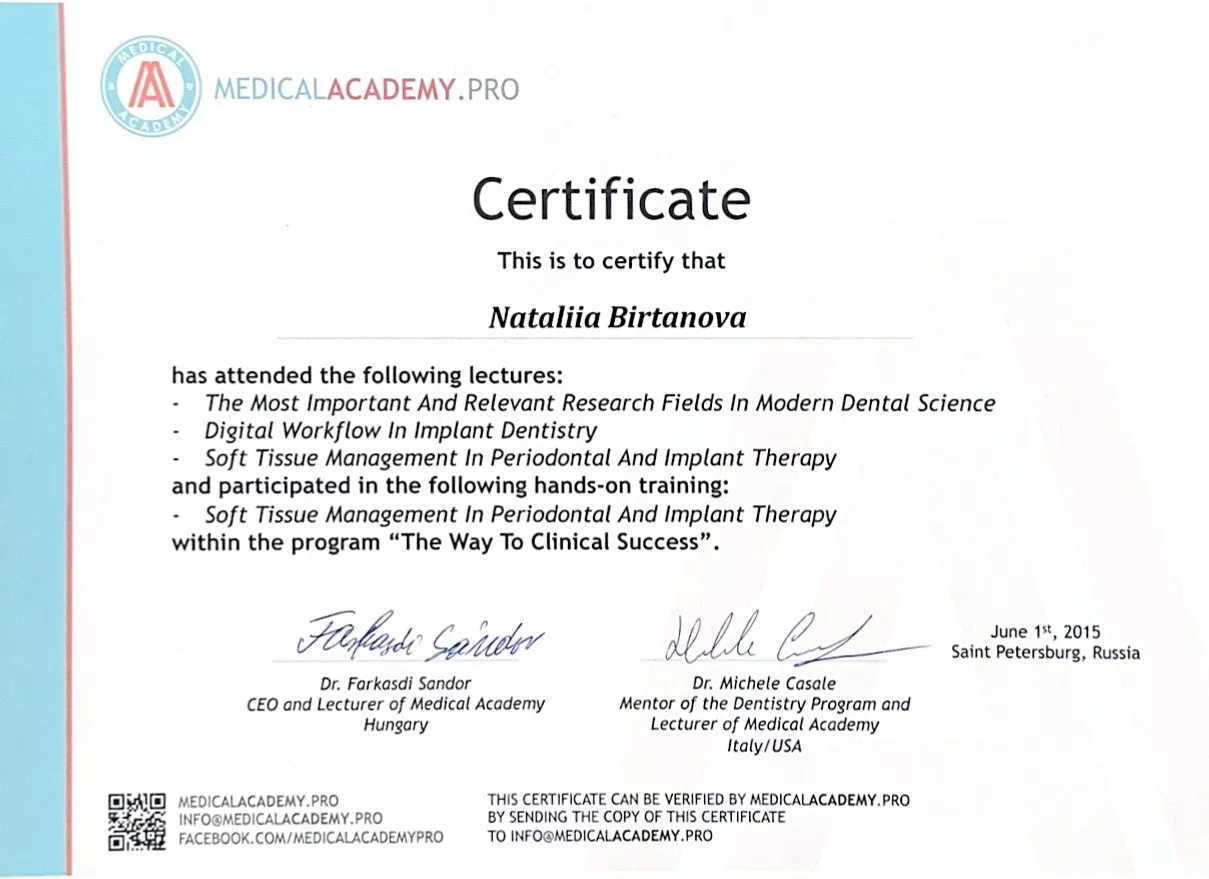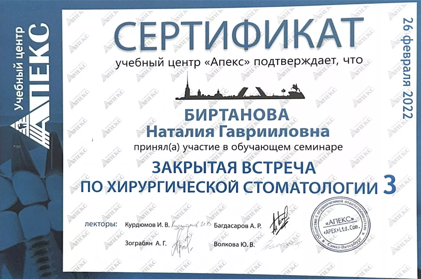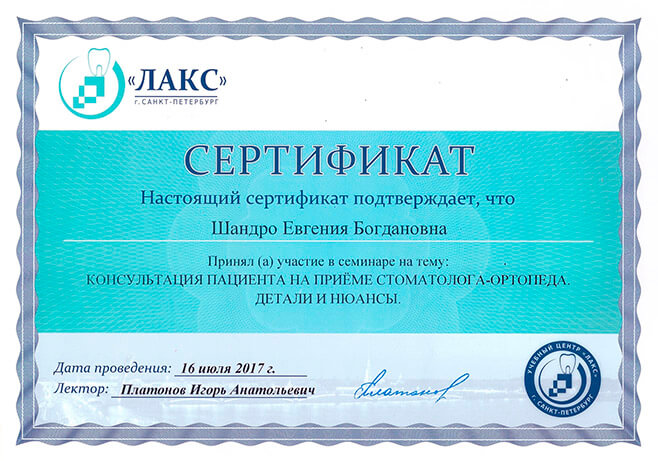 Всем доброго времени суток! Лечусь и наблюдаюсь второй год в клинике на Зины Портновой 54. Очень рада, что попала (не случайно, а по рекомендациям студентов - будущих стоматологов) именно в этот коллектив профессионалов !!! Все процедуры проходят на «ура» и без осложнений. Еще раз огромное человеческое СПАСИБО!!!