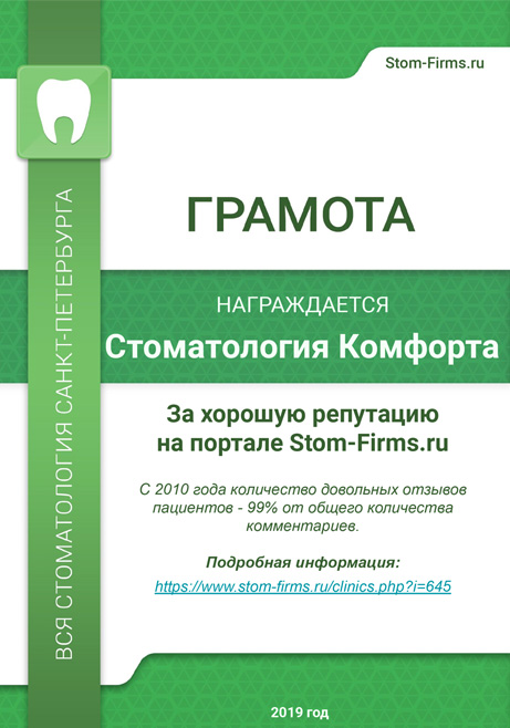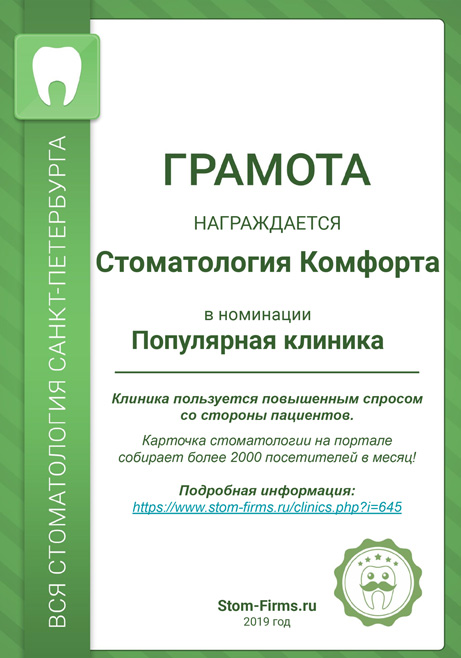 Выгодная стоимость лечения достигается за счёт работы без посредников и прямых поставок. Никогда не экономим на качестве услуг, материалов и оборудования, поэтому пациенты рекомендуют «Стоматологию Комфорта» и выбирают в качестве семейной стоматологии.