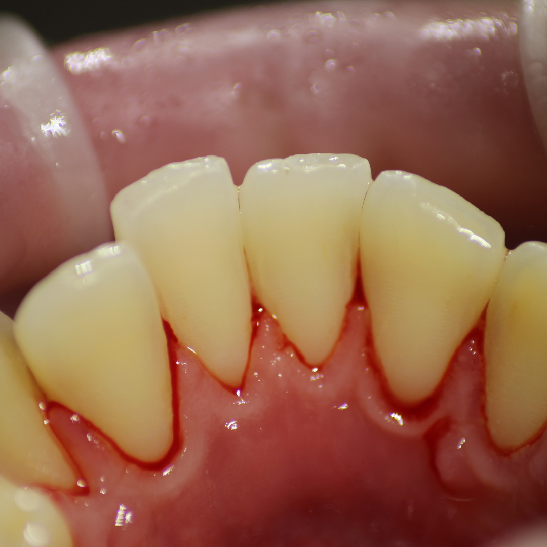 В клинику обратился пациент с жалобами на кровоточивость дёсен, неприятный запах изо рта. Врач Галухина Карина Николаевна осмотрела пациента и выявила простой маргинальный гингивит. Было решено провести процедуру профессиональной гигиены полости рта. В заключение пациенту было рекомендовано использование зубной нити и ирригатора.