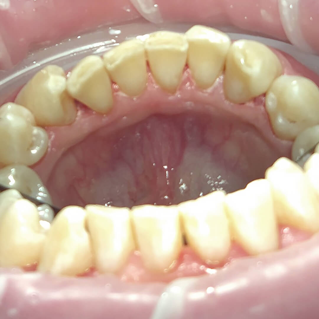 В «Стоматологию Комфорта» обратилась пациентка с жалобами на наличие зубных отложений и пигментацию. Врач-стоматолог-терапевт Луцюк Наталья Владимировна провела осмотр пациента и диагностировала хронический катаральный генерализованный гингивит. Было принято решение о проведении профессиональной гигиены с целью снятия минеральных отложений ультразвуком, а также удаления пигментированного налёта пескоструйным аппаратом и последующей полировкой пастой SuperPolish.