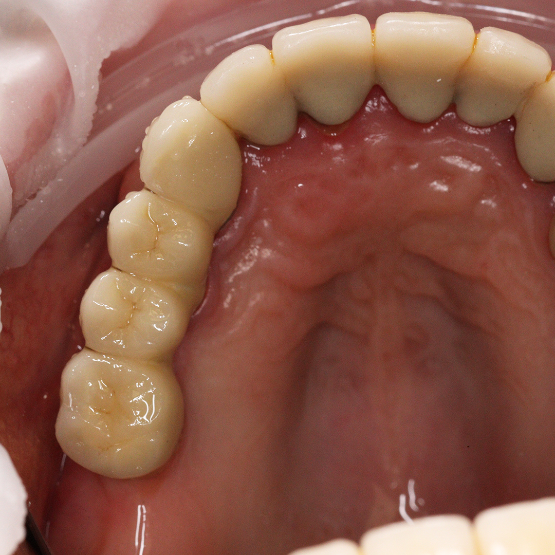 - установка мостовидного металлокерамического протеза через 4 месяца.