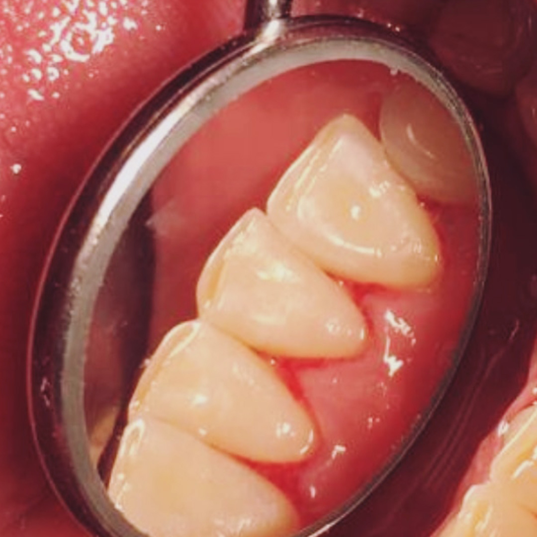 У пациентки «Стоматологии Комфорта» были жалобы на кровоточивость дёсен во время чистки зубов. Также во время осмотра был обнаружен налёт на поверхности зубов. В результате поставлен диагноз: хронический генерализованный катаральный гингивит.