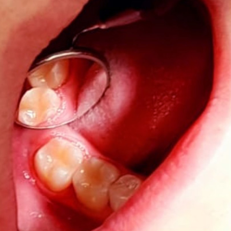 В «Стоматологию Комфорта» обратилась пациентка с жалобой на образование полости в нижнем премоляре и быстро проходящую боль от холодного, а также при чистке зубов. В ходе осмотра поставлен диагноз: глубокий кариес зуба 3.5 (дистально- окклюзионно), клиновидный дефект. Принято решение о проведении лечения с помощью композитного материала Эстелайт.