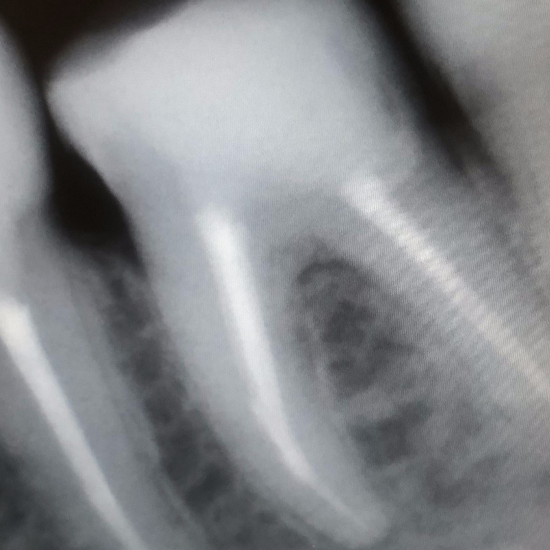 В клинику обратилась пациентка с жалобами на периодическую ноющую боль в нижнем левом зубе, а также застревание пищи между зубами. В ходе осмотра врач Луцюк Наталья Владимировна константировала наличие хронического пульпита 3.6. зуба. Было решено провести восстановление стенки зуба, пломбирование каналов и постановку временной пломбы из материала «Стомафил». После процедуры пациент был направлен к ортопеду для восстановления коронковой части зуба 3.6 коронкой.