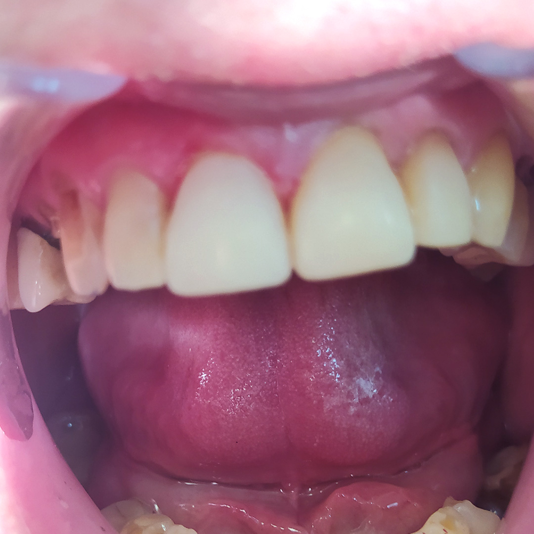 Пациент обратился «Стоматологию Комфорта» с жалобой на дефект пломбы 1.1 зуба, а также длительные самопроизвольные боли. На осмотре врач Игнашина О.В. пришла к выводу о целесообразности эндодонтической обработки канала. Была рекомендована последующая реставрация коронковой части зуба во второе посещение.