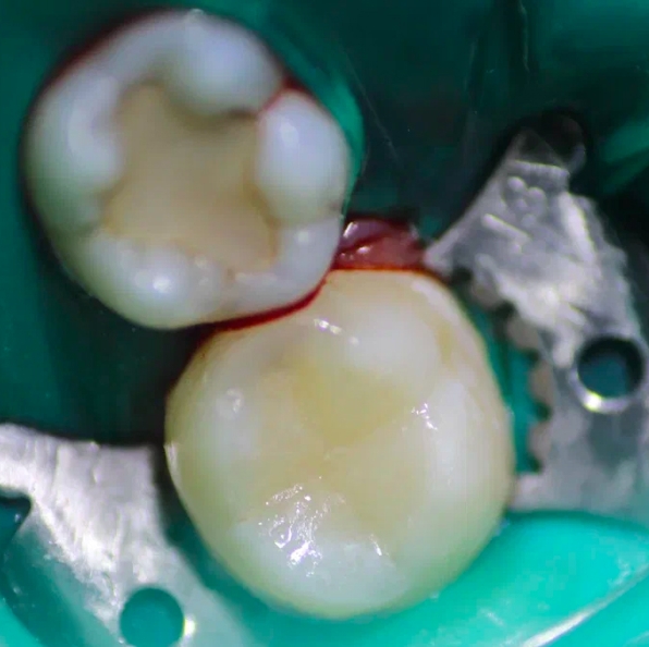 В «Стоматологию комфорта» обратилась пациентка с жалобами на дефект пломбы зуба на нижней челюсти слева. В ходе осмотра врач Галухина Карина Николаевна обнаружила кариес дентина 3.7 зуба. Было принято решение о лечении кариеса и реставрации зуба при помощи композита Filtek Posterior.