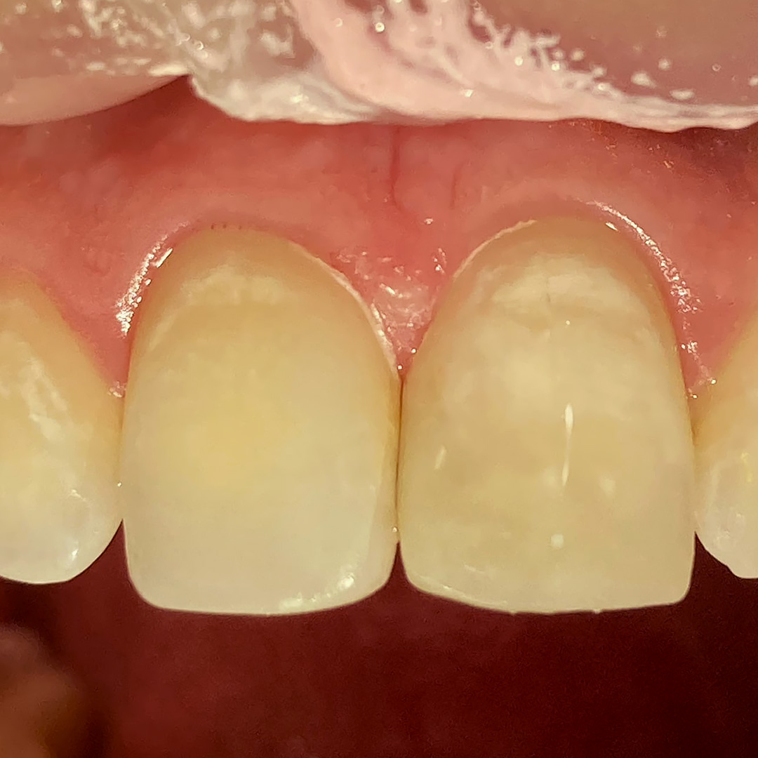 Пациент обратился в «Стоматологию Комфорта» с жалобами на косметический дефект, полученный в результате травмы. Врач Галухина К. Н. после осмотра диагностировала перелом коронки без повреждения пульпы и приняла решение о целесообразности лечения с применением электроодонтодиагностики (ЭОД), с последующей реставрацией скола композитом Estelite.