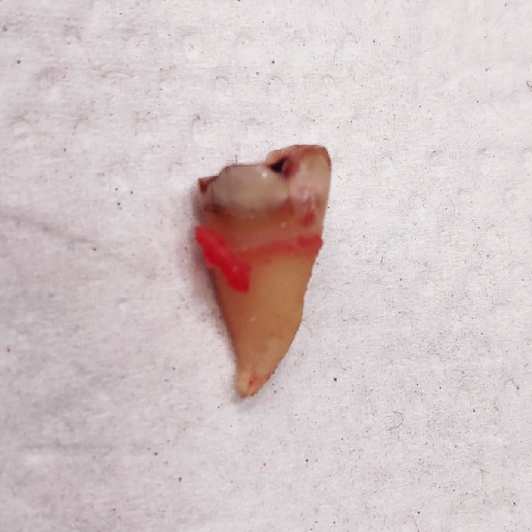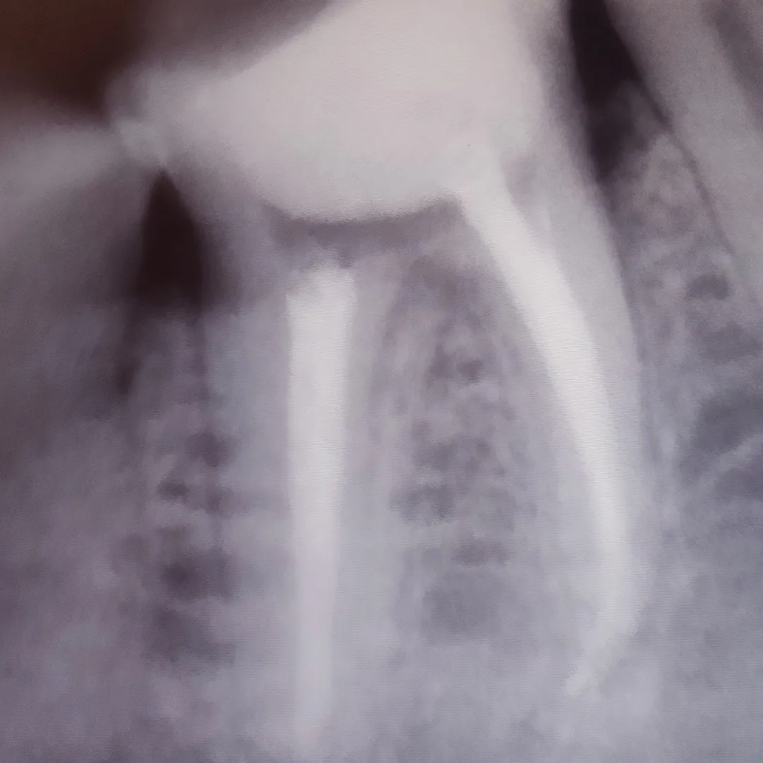 К нам в клинику обратился пациент с жалобами на постоянные ноющие боли, усиливающиеся в вечернее время в зубе 4.8. Боль от холодного проходит не сразу. Зуб начал беспокоить пару дней назад. После проведения рентгенограммы доктор Черных Антон Алексеевич поставил диагноз: обострение хронического пульпита и принял решение удалять 4.8 зуб.