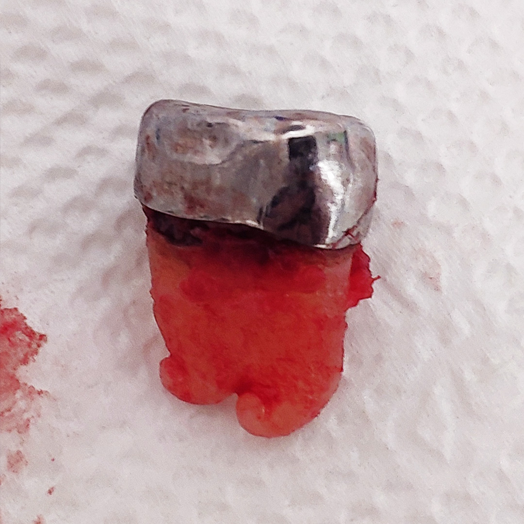 Со слов пациента, зуб был покрыт металлической коронкой в другом ЛПУ. Раньше зуб не беспокоил. Боль появилась буквально пару дней назад.