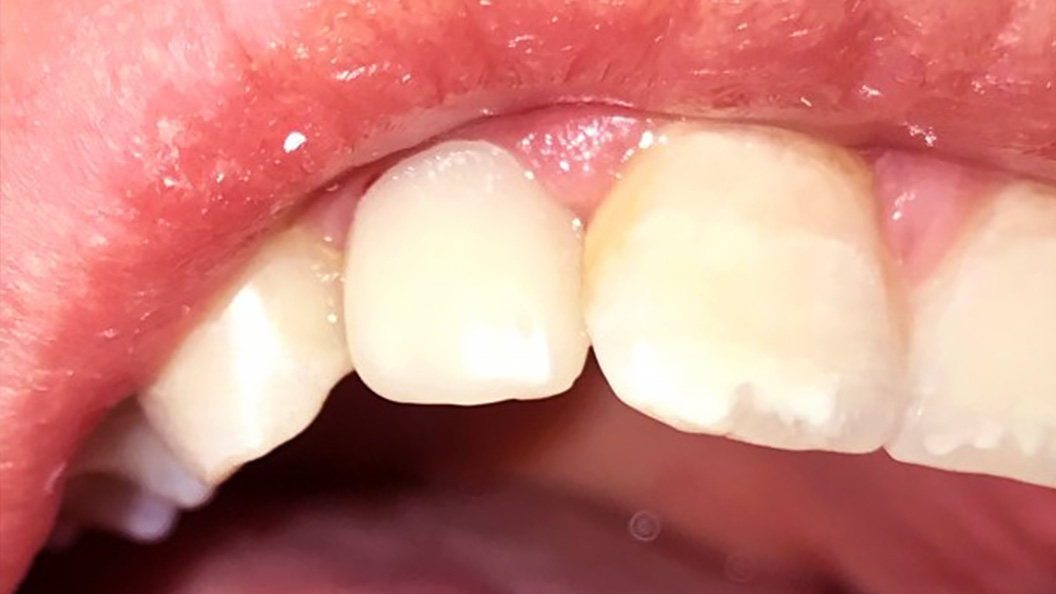 Единичный дефект в зоне улыбки или сильно прозрачная эмаль. Для лучшей эстетики подойдет коронка из керамики E-max. Ее прозрачность сравнима с натуральной зубной эмалью, неотличима на фоне всего ряда.