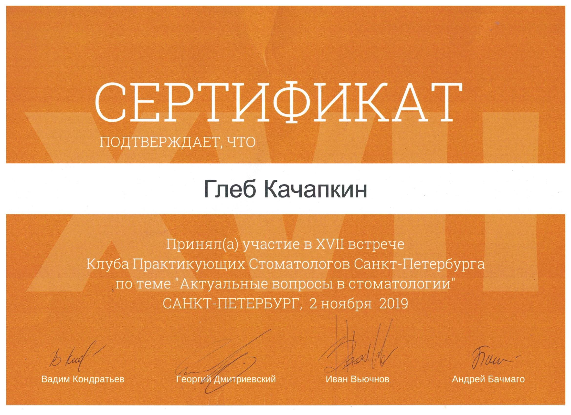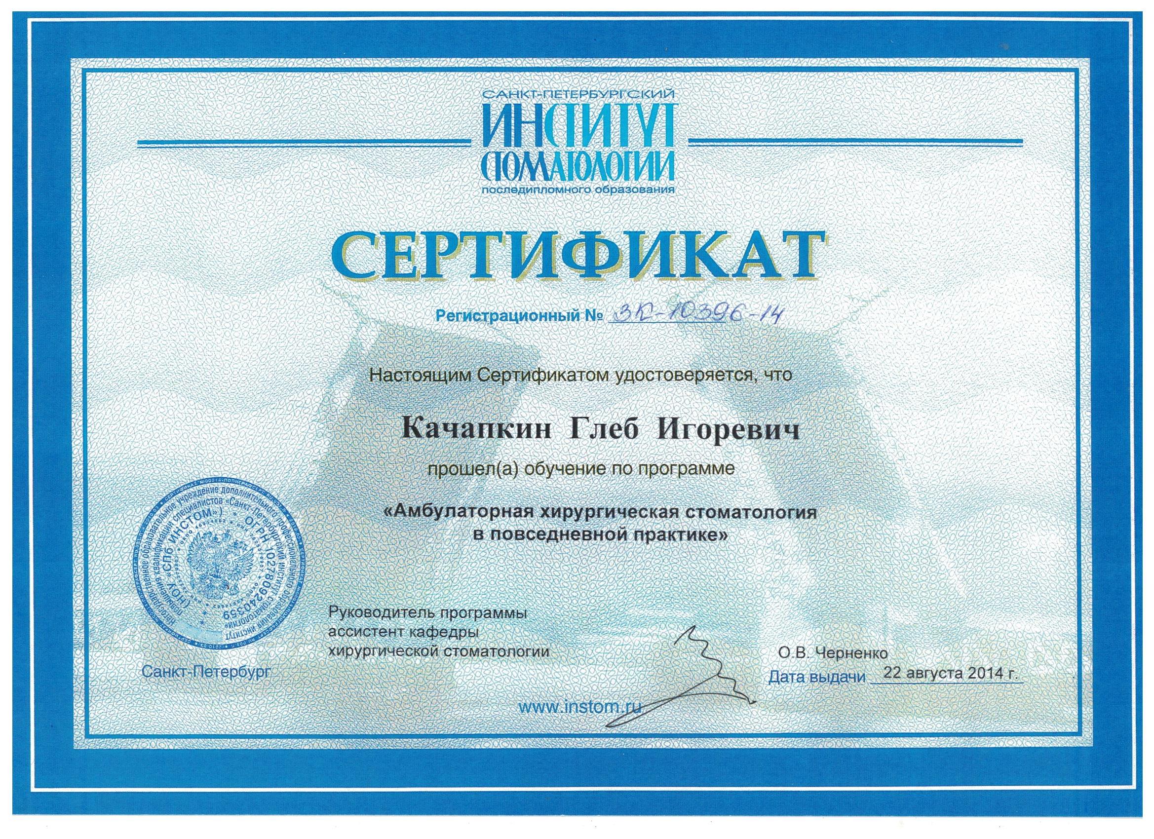 В данный момент подтверждает квалификационную категорию по специальности «Стоматология ортопедическая». Слушатель различных курсов по специальностям хирургическая и терапевтическая стоматология: