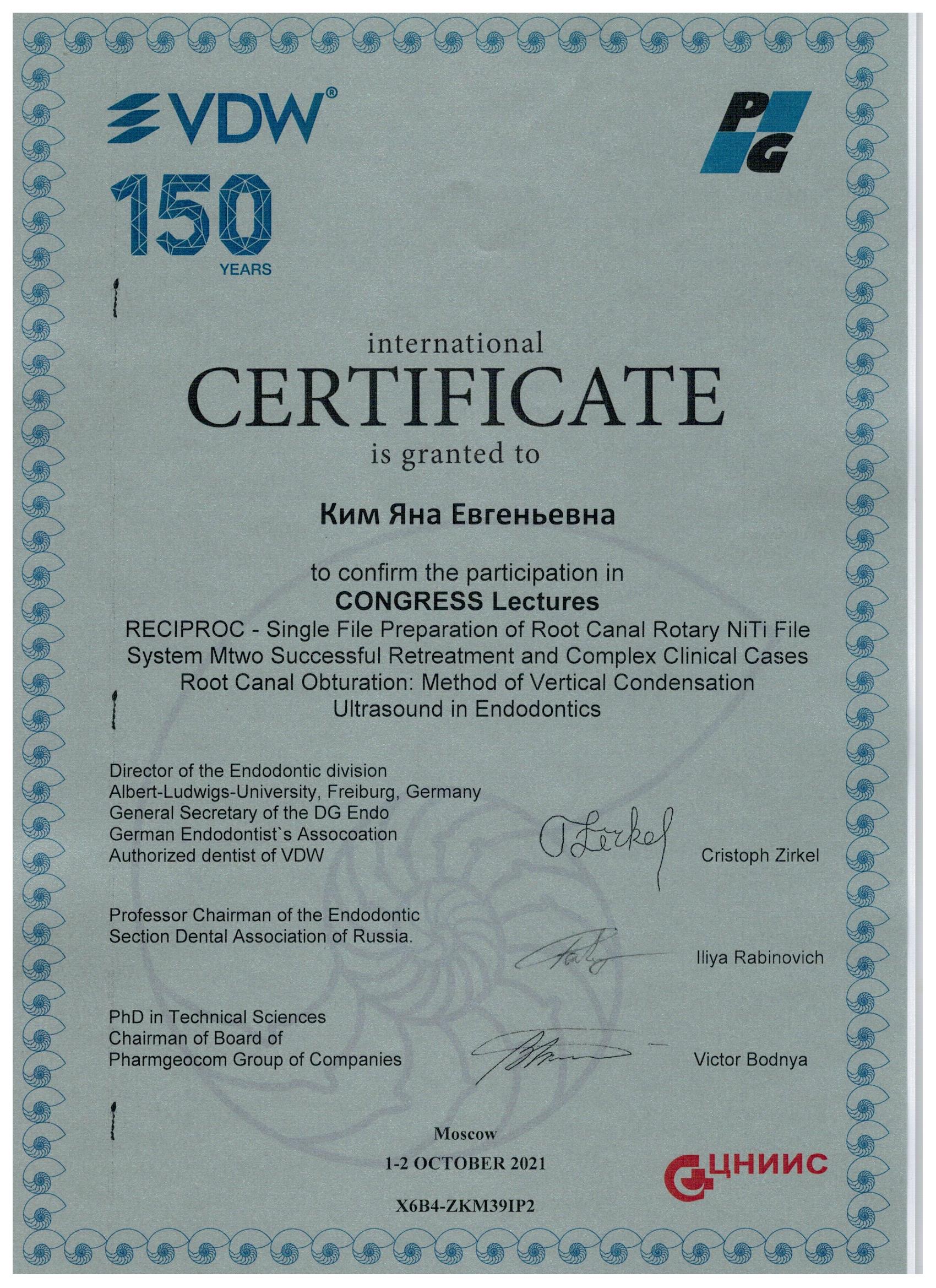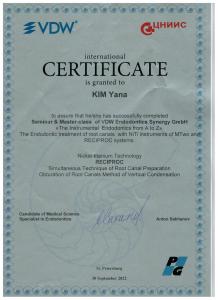 - Seminar&Master-class of VDW Endodontics Synergy GmbH «The Instrumental Endodontics from A to Z». The Endodontic Treatment of root canals with NiTi instruments of Mtwo and Reciproc systems. Лектор Саханов А.А., 2022