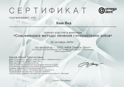 В 2021-2023г. обучение в ординатуре по специальности «Стоматология общей практики» в Северо-Западном государственном медицинском университете им. И.И. Мечникова.