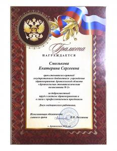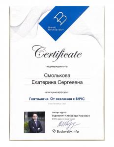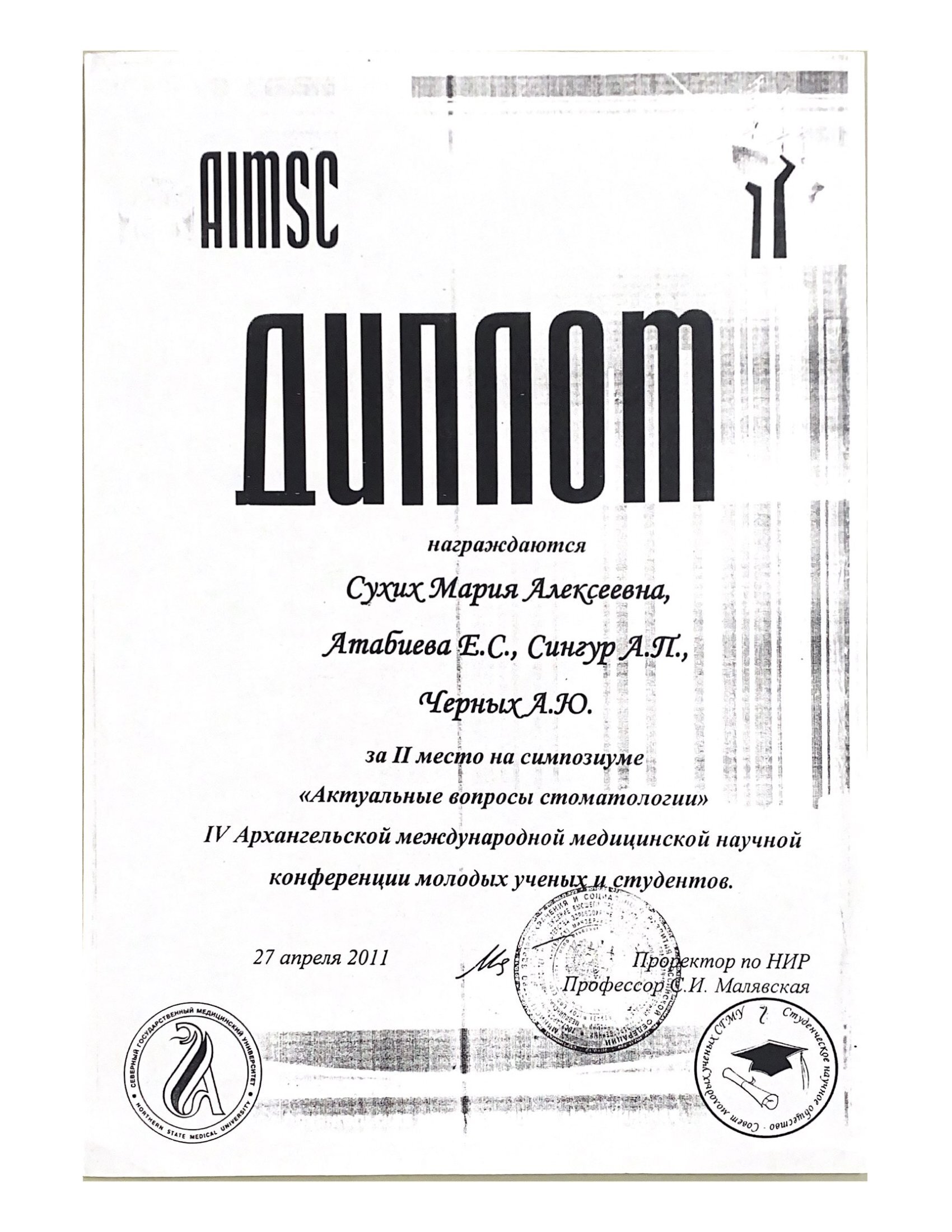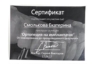 В 2017 году окончила ординатуру в СГМУ по специальности стоматология ортопедическая, присвоена квалификация врач- стоматолог- ортопед.