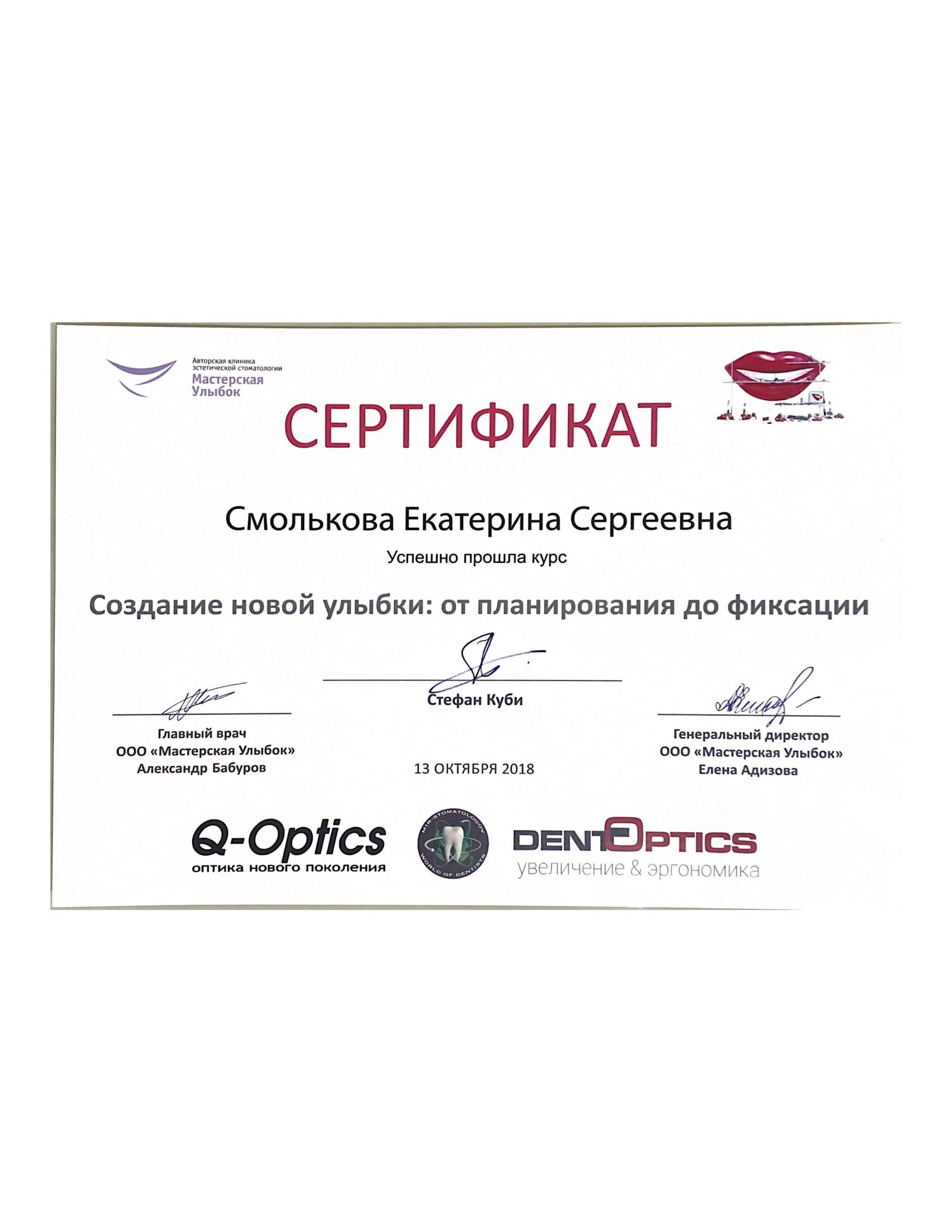 - 2018 г. Создание новой улыбки: от планирования до фиксации. Мастерская Улыбок
