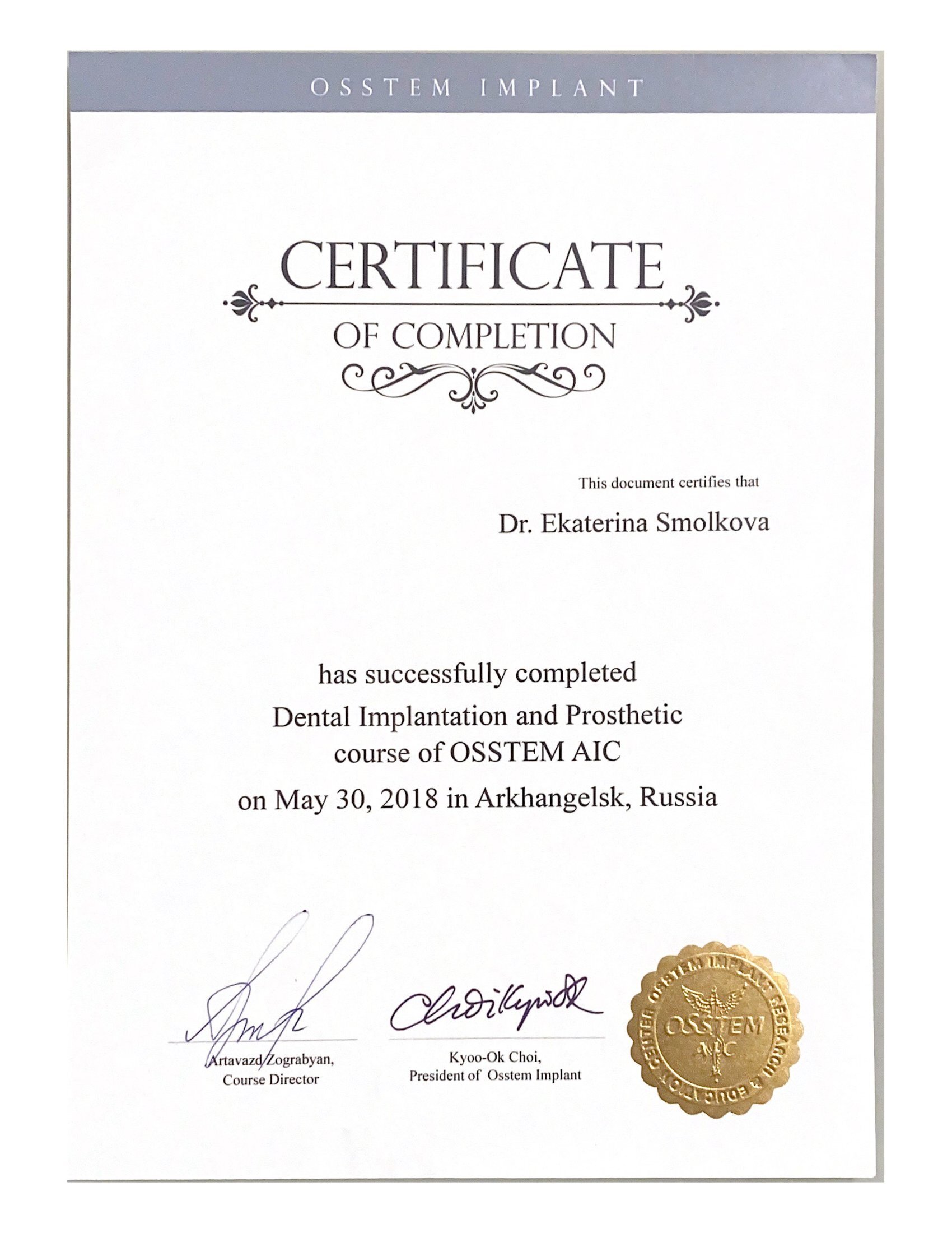 - 2018 г. Dental implantation and prosthetic course of OSSTEM AIC. Artavazd Zograbyan